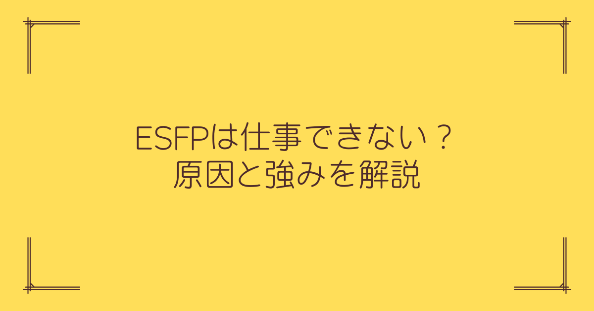 この記事では、ESFPが「仕事できない」と言われる理由、向いていない職場、強みが活きる仕事、そして評価されやすくなる改善策までわかりやすく解説します。