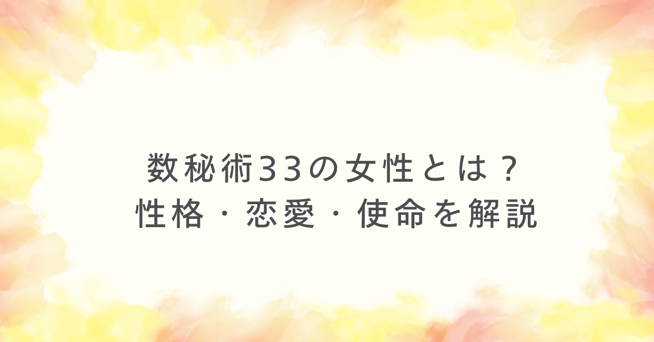 この記事では、数秘術33の女性の性格、恋愛、仕事、相性、幸せになるコツまでわかりやすく解説します。