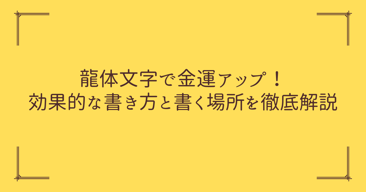 この記事では、金運アップに効果的な龍体文字の使い方を初心者向けに丁寧に解説します。