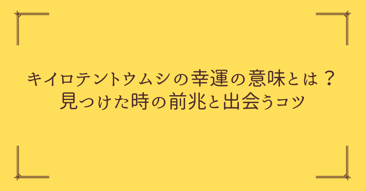 本記事では、キイロテントウムシにまつわる意味や由来、出会いやすい場所・季節、そして出会ったときの過ごし方まで、詳しくご紹介します。